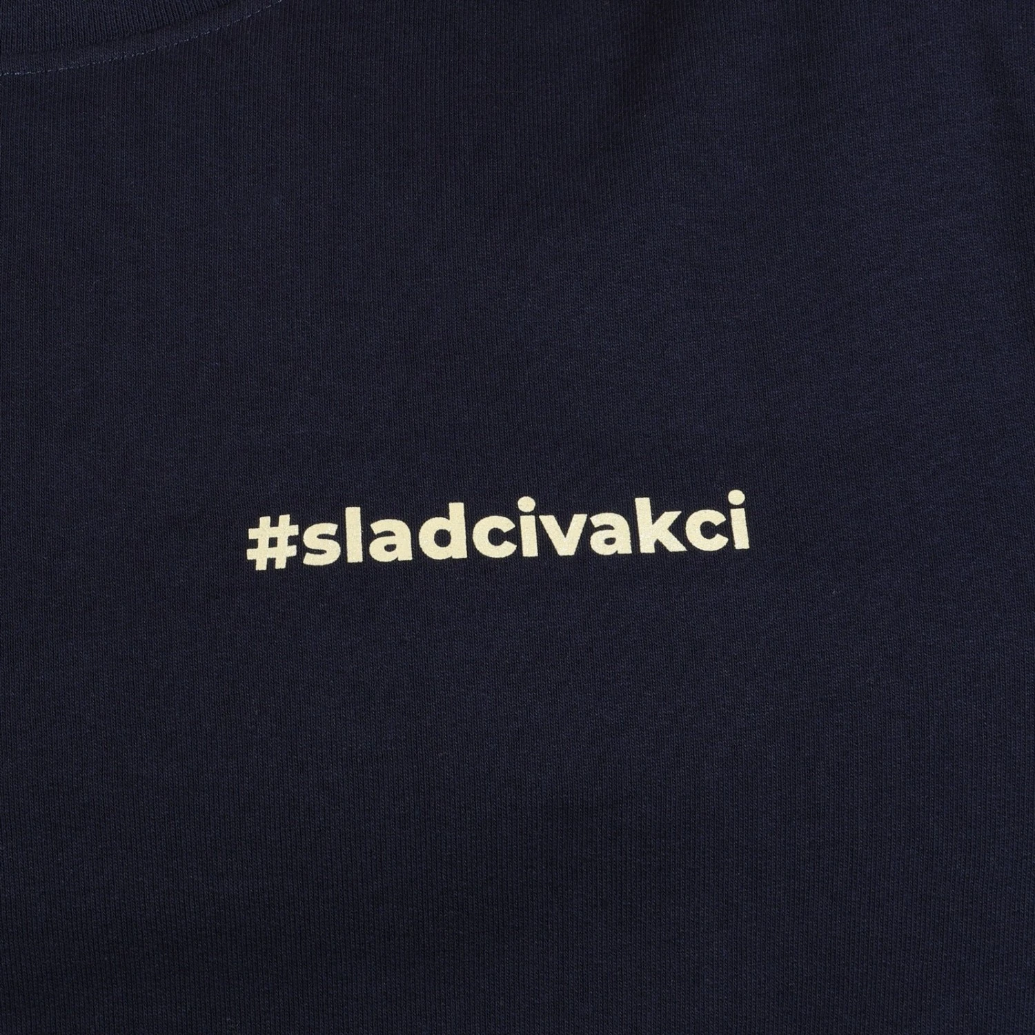 Grafika na zádech znázorňuje tři fáze správného čepování: čisté, mokré a studené sklo, hustou krémovou pěnu a dokonalé kroužkování. Přesně to, co odlišuje mistrovské čepování od průměru. Na hrudi nese hrdý nápis #sladcivakci, který říká víc než tisíc slov, že to s pivem myslíš vážně.