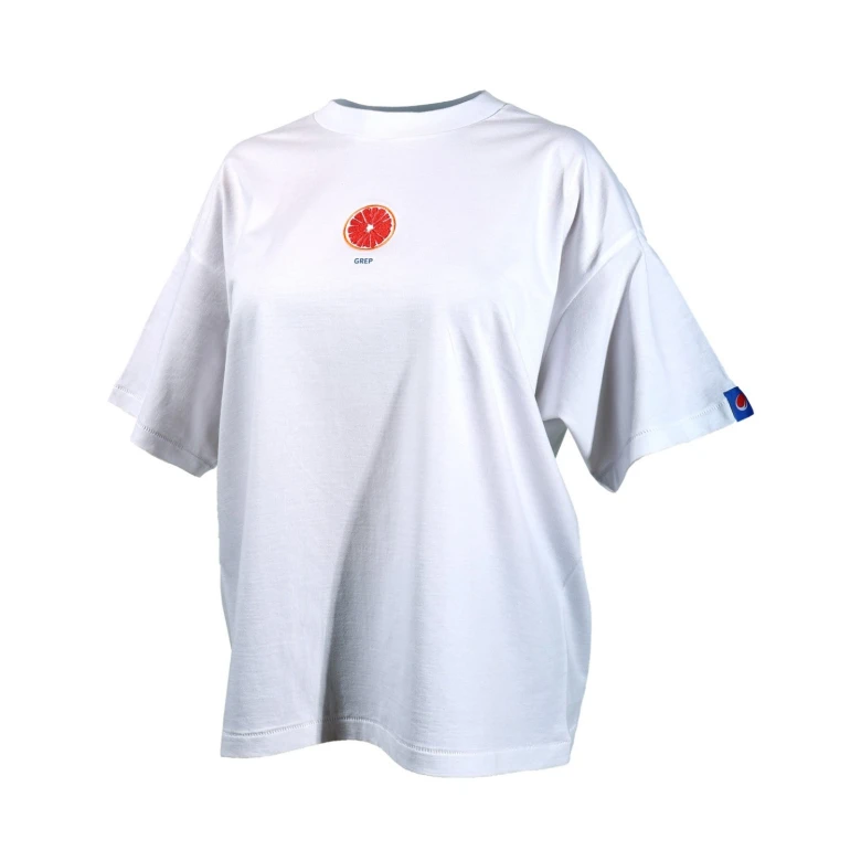 Das weiße Birell-T-Shirt mit Grapefruit-Motiv ist ein Symbol für Leichtigkeit und Lebensfreude. Der universelle Schnitt, das angenehme Material und der dezente Aufdruck machen dieses T-Shirt zum idealen Begleiter für jede Gelegenheit – in der Stadt, auf Ausflügen und beim Sport.