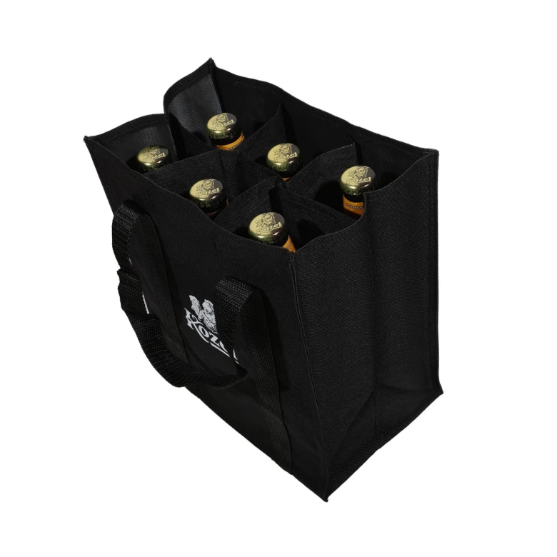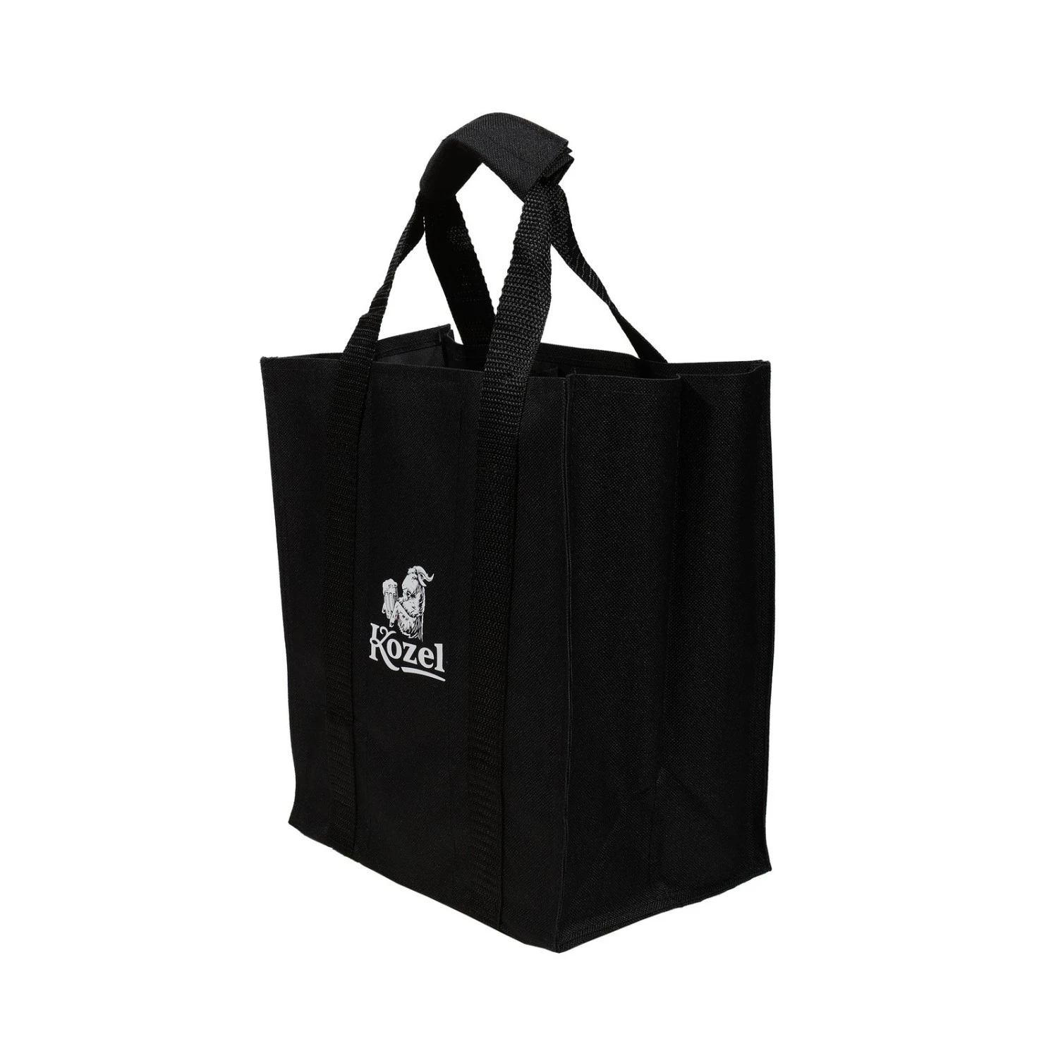 Take your Kozel on a trip. This black textile bag with a beige Velkopopovický Kozel brewery logo holds 6 bottles of your favourite beer from Velké Popovice. An ideal aid for summer barbecues or gatherings with friends.