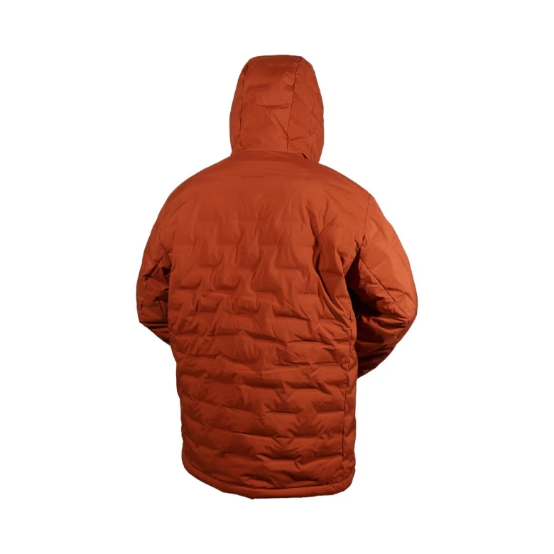 The advantage of welded chambers is that they prevent heat loss, protect the down from moisture, and extend its lifespan. The jacket features a hood and elasticated cuffs, a main reverse zipper, zippered pockets, and one inner zip pocket. The hem has adjustable width. Ideal for everyday use.