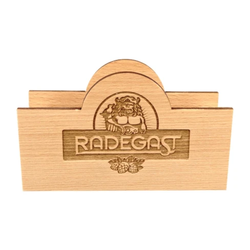 Wooden coaster Radegast logo