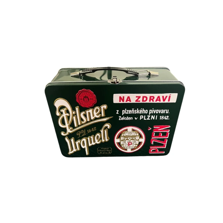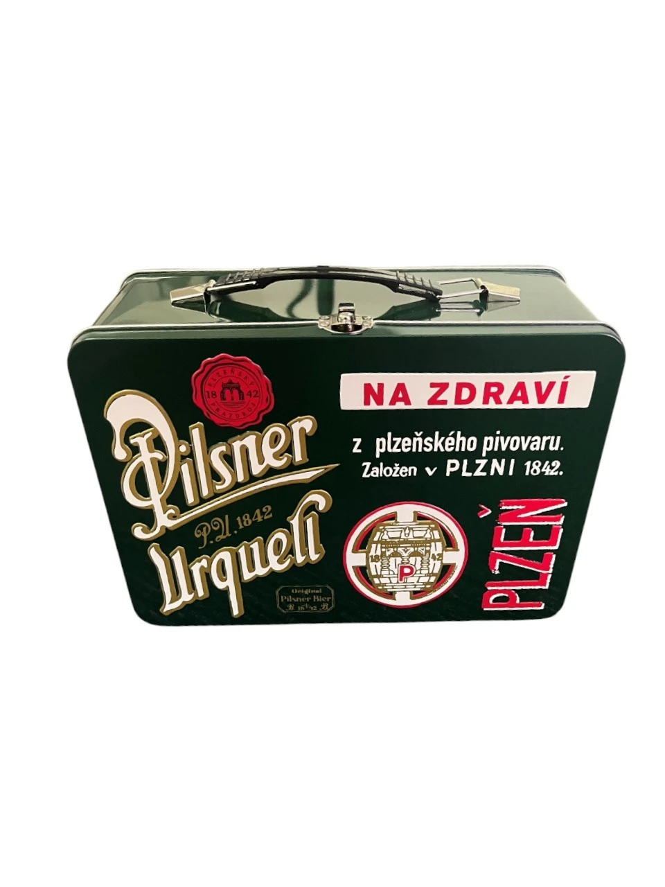 Doprajte si kúsok histórie piva s týmto retro plechovým kufrikom Pilsner Urquell. Dizajn je inšpirovaný klasickými reklamnými motívmi pivovaru v Plzni a prináša jedinečný nádych nostalgie. Ideálny ako štýlová dekorácia, darčekové balenie na pivo alebo originálne úložisko na drobnosti. Skvelý doplnok pre všetkých fanúšikov poctivého českého piva.